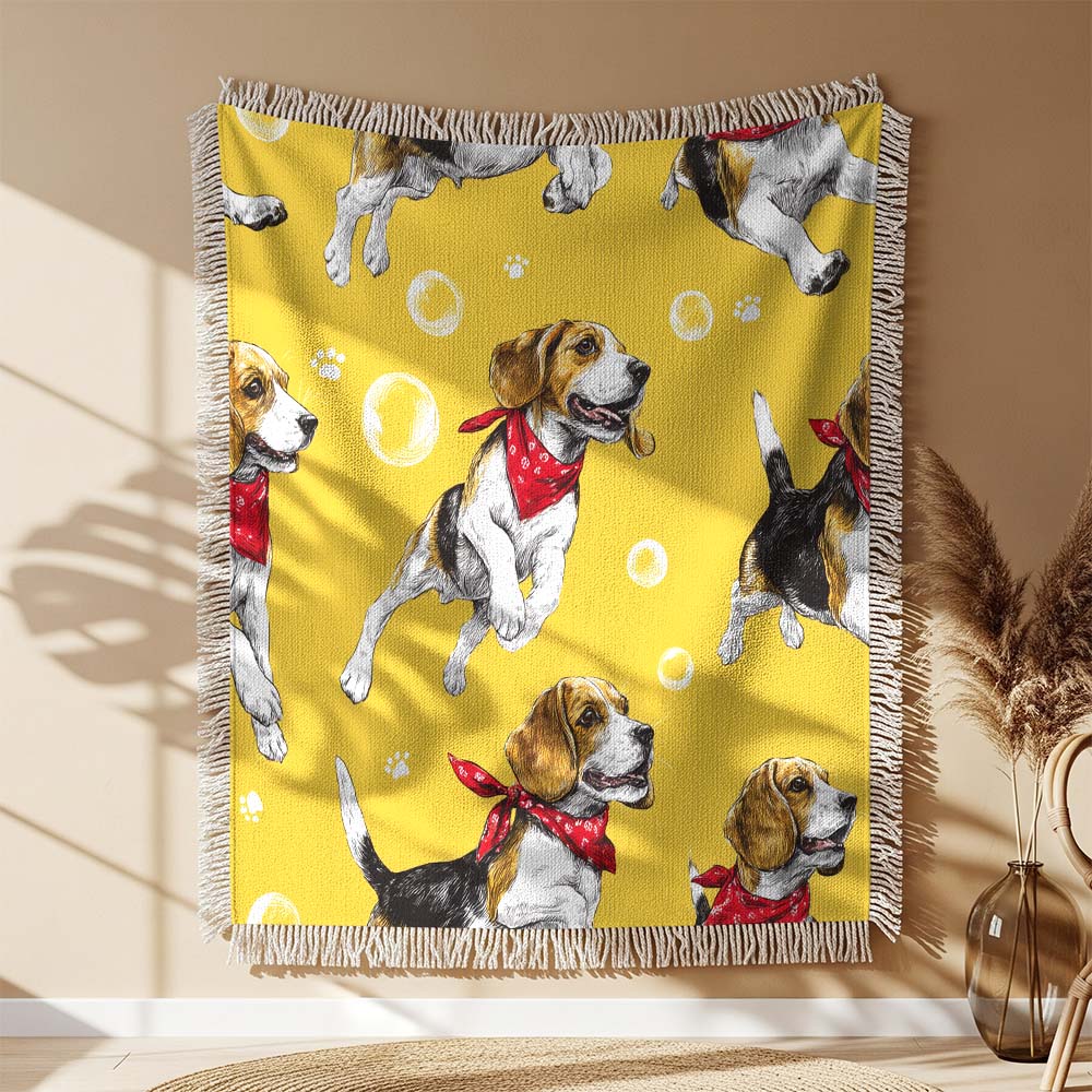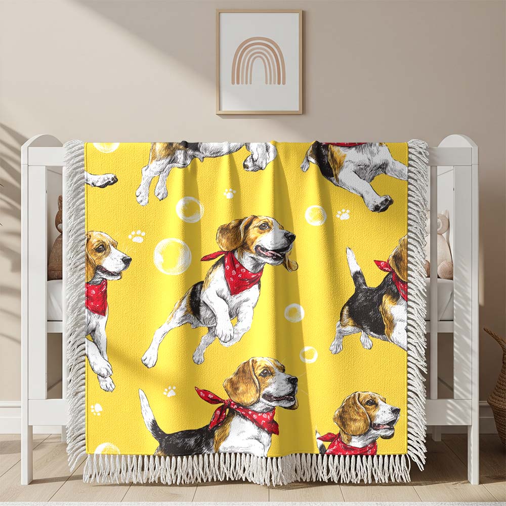 Couverture Tissée Beagles Mignons sur Fond Jaune