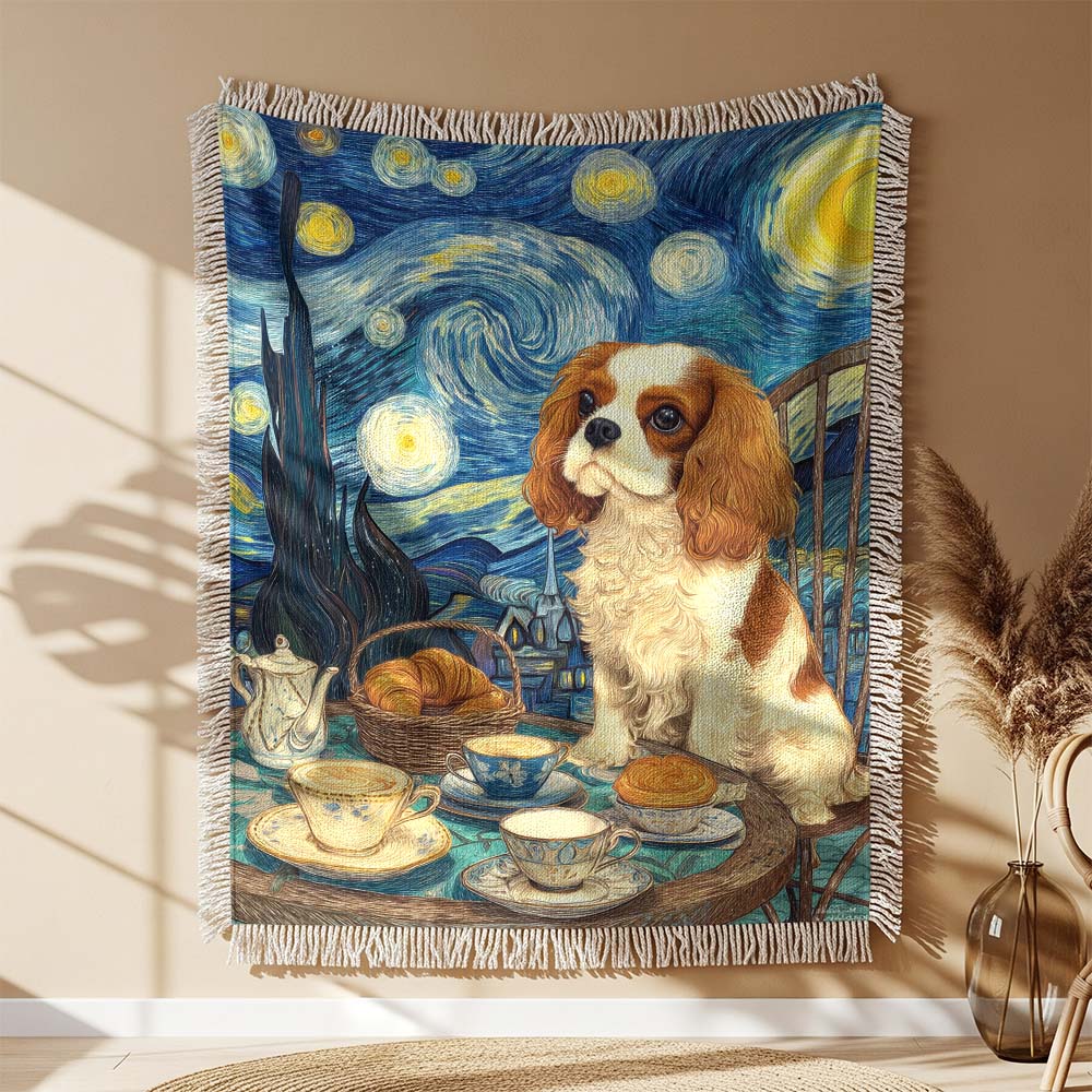 Couverture Tissée Chiot King Charles Spaniel Crème et Blanc