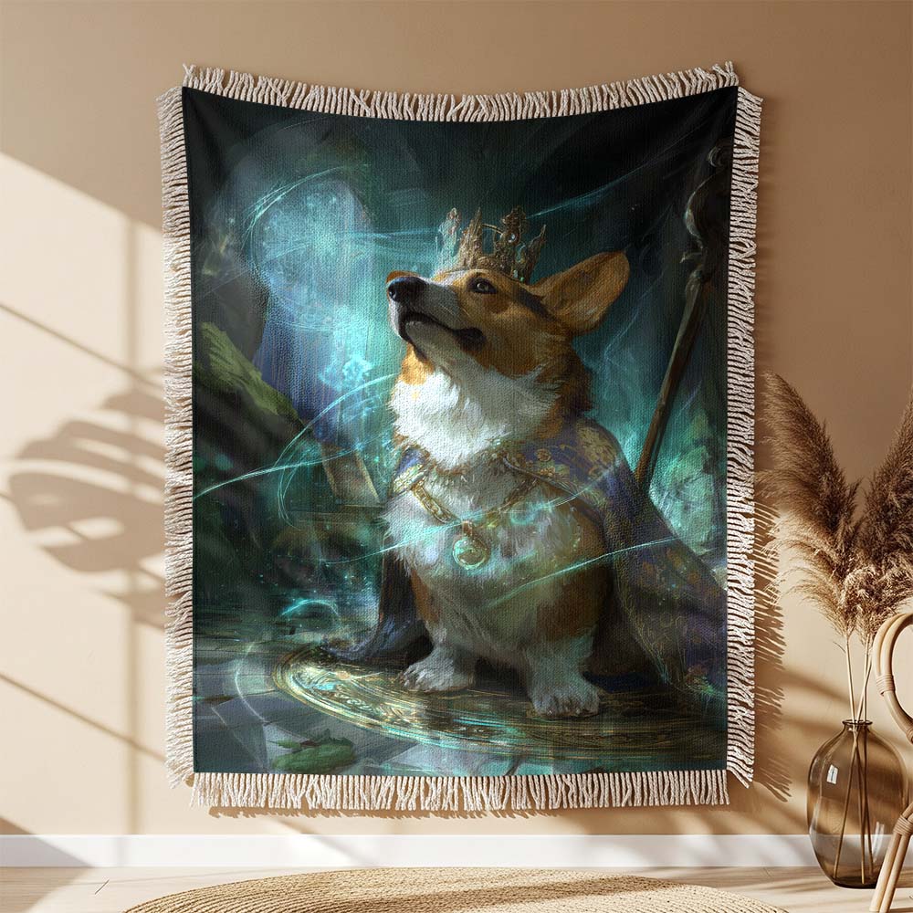 Couverture Tissée Grand Corgi Noble Magique Fantaisie