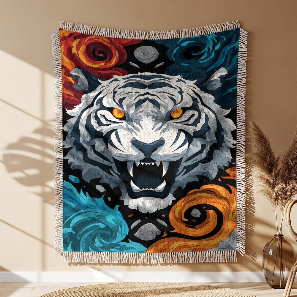 Couverture Tissée Tigre Blanc